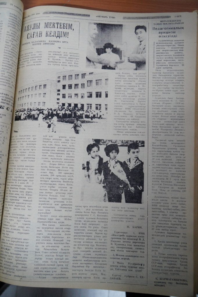 Аудан орталығы Октябрьск қаласында жаңа оқу жылы басталар қарсаңында есте қаларлық үлкен оқиға болды. Ол қазақша қазақ орта мектептің ашылуы еді. Шындығына келгенде, қаламызда жас ұрпақтың орта білім алуына арналған оқу ордалары баршылық. Атап айтқанда, қазақ-орыс, екі аралас орта мектептері жұмыс істеді. Ал, таза қазақша мектеп ашу жөнінде ұсыныстар көптен бері әңгіме болып келетін. Октябрь қаласы жылдан жылға тез өсіп келеді. Сондықтан балаларды оқытатын мектеп салу мәселесі де күн тәртібінен түспей келді. Соңғы жылдары іске қосылған №2 және №3 орта мектептерге оқушылар сыймайтын болды. Тағы да бірмектеп салу керектігі айдан анық еді. Жаңадан салынған мектеп үйінің құрылысы осындай объектілерге қарағанда едәуіржедел жүргізілді, бас-аяғы екі жылда іске қосылды.