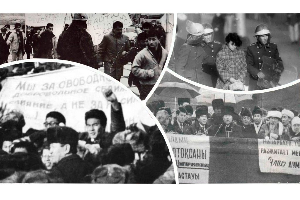 Сонымен алаңға оралсақ, жиналған жастар айқайлап, «Қонаев атамызды шақырып, трибунаға шығарыңдар, биліктен кету себебін өзі айтып, түсіндірсін, содан кейін кетеміз» деп талап қойды. Сағат 17:30 шамасында күн батып, қараңғылық түсе бастаған сәтте қолдарында үлкен қалқандары, бір метрге жуық резина таяқтары, бастарында каска, беттерін қорғайтын әйнек маскалар, белдерінде сапер күректері бар, түрлері сұсты арнайы әскери жасақтар автобустармен лек-легімен келіп жатты. Кейбіреулерінің қолында шынжырлаулы қасқыр тәріздес үлкен иттері де болды.