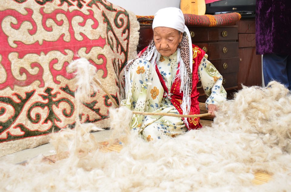 Осыдан біраз уақыт бұрын Ақкемер ауылына іссапармен барған сәтімде сол ауылда тұратын Жанбөпе СЫРҒАБЕКОВА әжейдің киіз басу өнеріне куә болған едім. Ұлттық құндылықтарымыз ұлықталатын Наурыз тойы қарсаңында кенже қалған киіз басу өнерін бүгінгі ұрпаққа жеткізіп, қыз-келіндеріне аманаттап жүрген Жанбөпе әжеймен болған шеберлік сағатынан сыр тарқатқанды жөн көрдік. Сонымен…