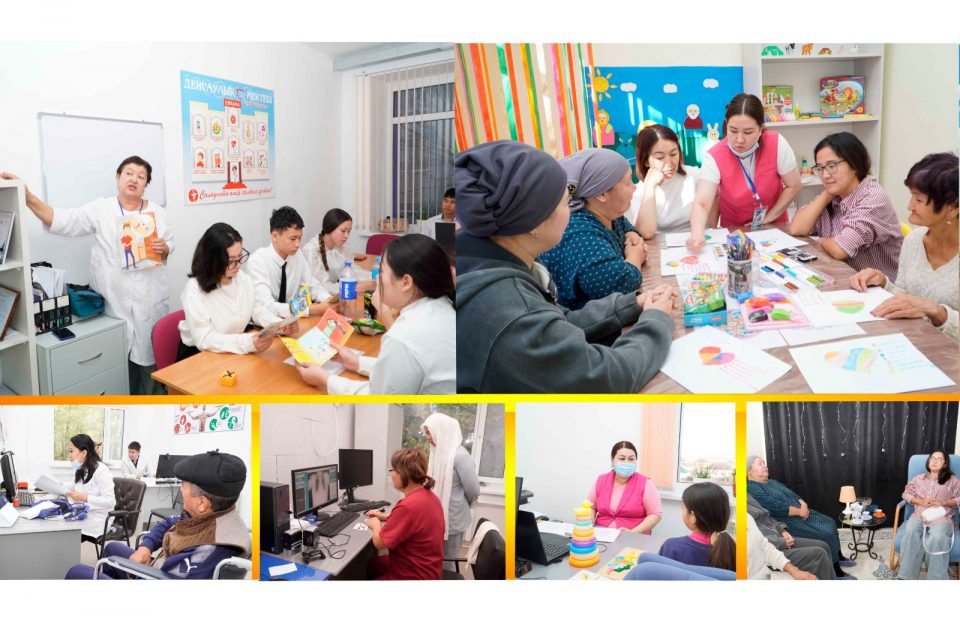 Во время пребывания в отделении социально-психологической помощи, мы увидели то, что здесь сейчас созданы все условия. Имеются полностью оборудованные кабинеты психологов, комната социального работника, кабинеты планирования семьи и пропаганды здорового образа жизни, комнаты арт-терапии и релаксации. Первый наш визит в отделение совпал с Днем открытых дверей. Мы застали там матерей и опекунов детей с инвалидностью. Обратившиеся, получали консультацию психолога, расслабились в кабинете релаксации, а также позанимались в кабинете арт-терапии. «Релаксация включает в себя целый комплекс различных упражнений и методик, таких как нервномышечная релаксация, визуализация и дыхательные практики. В процессе мышечного и эмоционального расслабления снимаются мышечные зажимы, восстанавливается психоэмоциональное равновесие, устраняются последствия стрессовых ситуаций и хроническое напряжение, а организм получает полноценный отдых. Что касается арт-терапии, то эта форма восстановления через творчество оказывает положительное эмоциональное воздействие на пациента, помогает невербально выразить те переживания, которые не всегда получается высказать в общении с психотерапевтом. По этим рисункам наши специалисты могут оценивать психическое состояние пациентов», — поделилась Жаналтын Молдашева.