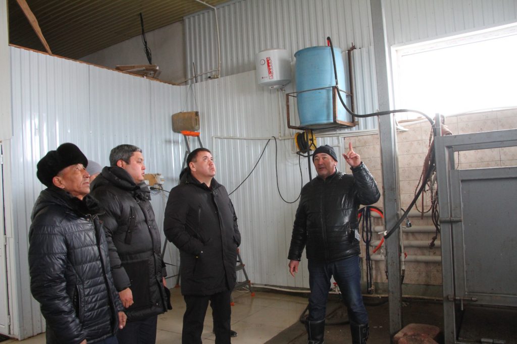 В первую очередь, народные избранники ознакомились с работой убойного пункта, мощностью от 15 голов в сутки, который построил местный предприниматель Ерлан Анарбеков. Владелец убойного пункта показал народным избранникам цех и прилегающую территорию. По словам предпринимателя, производственный процесс в цеху включает 3 этапа. Это забой скота, разделка туши и заморозка. На строительство и закуп оборудования было затрачено 25 млн тенге, из них свыше 9 млн тенге было взято в кредит по программе «Ауыл Аманаты».