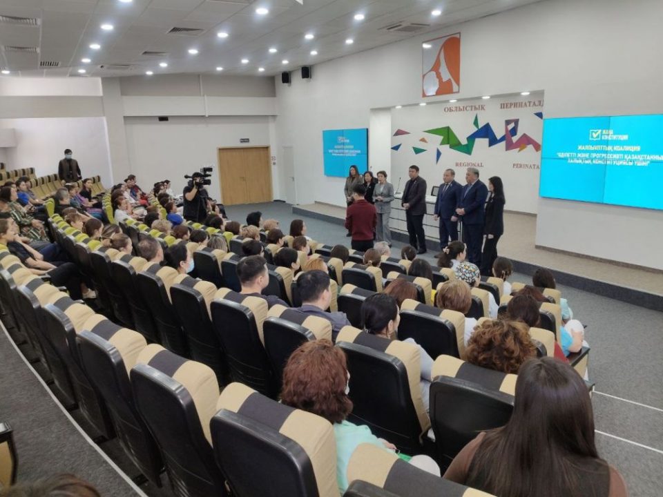 Заместитель председателя Мажилиса Дания Еспаева, член Комитета по аграрным вопросам Мажилиса и Общенациональной коалиции «За Народную Конституцию Справедливого и Прогрессивного Казахстана!» Казыбек Алишев, председатель областного маслихата, член Комиссии по конституционной реформе Гулкасима Суентаева, депутаты областного маслихата Кайрат Сабыр, Раушан Жалимбетова, Асем Ильясова и главный врач областного фтизиопульмонологического центра Ерлан Татимов рассказали о сути проекта новой Конституции. Медработники восприняли их выступления позитивно и с воодушевлением.