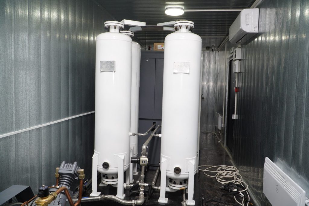 По прибытию в мед учреждение, журналисты газеты вместе с заместителями главного врача Мугалжарской районной больницы Айбеком Сугировым и Ауезом Кабиевым прошли к зданию кислородной станции. Типичное здание, стоящее рядом с больницей, скорее напоминало здание небольшого подсобного помещения, примерной площадью около 30 кв метров. Пройдя внутрь помещения, наши представления о том, что здесь люди вручную заполняют баллоны кислородом, обеспечивая по стоянный доступ к этому важному ресурсу, рассеялись. На самом деле все здесь работало по-другому. По словам заместителя главного врача Мугалжарской районной больницы Айбека Сугирова, на кислородную станцию сырьё — воздух поступает из окружающей атмосферы. Он сразу проходит очистку от пыли, масел и других примесей. Затем воздух поступает в основную часть установки — генератор. Здесь под высоким давлением происходит адсорбция. К слову, содержание медицинского кислорода должно составлять 99,5 процента. Также в нем не могут присутствовать масла и механические примеси. Затем он поступает в трубу, соединяющую кислородную станцию созданием, после чего происходит разводка внутри больницы – по палатами операционным, а также забор кислорода в аппараты ИВЛ. В самом медучреждении расположены 8 точек которые распределяют давление кислорода.