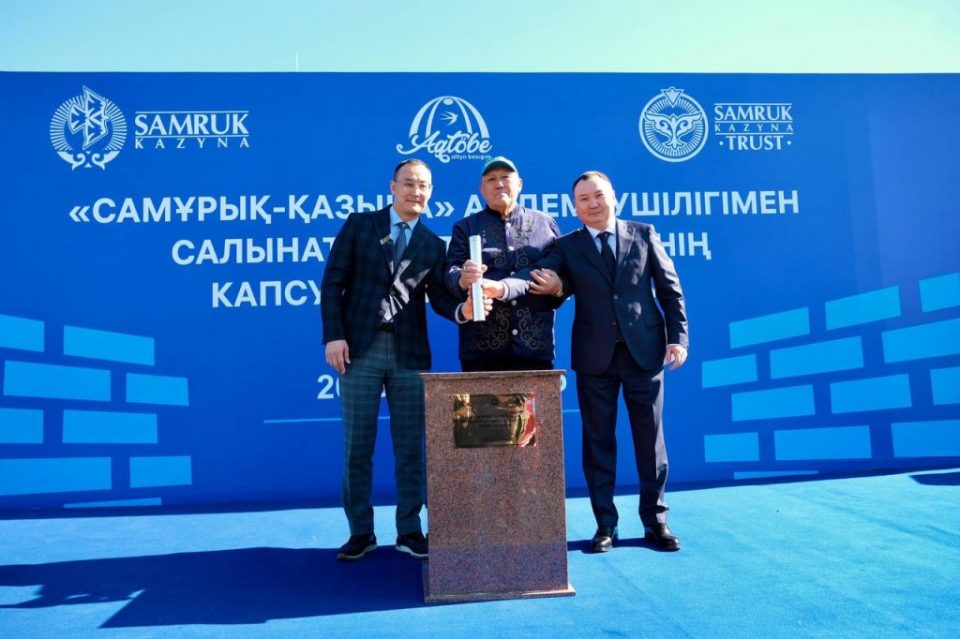 Заместитель акима области Асылбек Есенбаев и управляющий директор фонда «Самрук-Қазына» Гибрат Ауганов заложили капсулу в ознаменование начала возведения современного ФОКа.